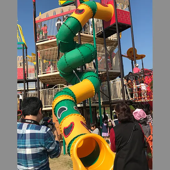 坂道や丘に設置できるオープンタイプのすべり台です。